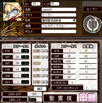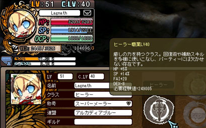 Lv54/ヒーラー43、メイド35、冒険者31、マジシャン35に。